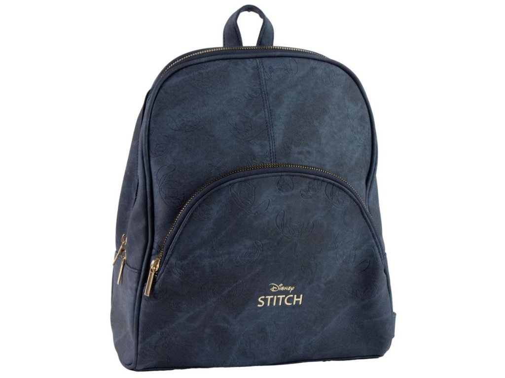 Tmavě modrý luxusní batoh vyvedený s ikonami Stitche, Angel, Scrump. Batoh má zapínání na zip, vnitřní menší kapsu, délkově nastavitelné popruhy a ucho pro snadné nošení v ruce pro každého menšího i většího fanouška pohádky Lilo and Stitch.