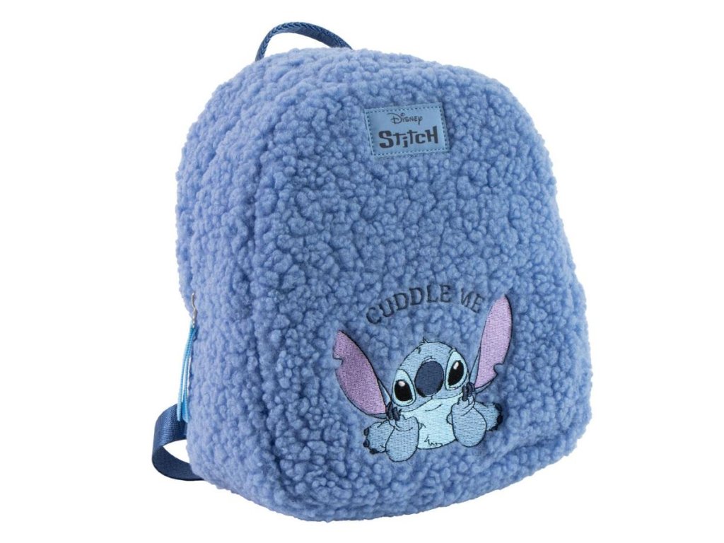 Modrý plyšový batoh s detaily ležícího Stitche. Aloha, Ohana! Připraveni na skutečně mimozemská dobrodružství? Tento super měkký ležérní batoh Stitch je nejen roztomilý a heboučký (přesně jako Experiment 626!), ale i tvůj dokonalý parťák pro nošení všech nezbytností. Ať už surfuješ na kosmických vlnách nebo jen zvládáš denní chaos, popadni ho! Nech Stitche, aby ti připomněl 'obejmi mě' a užil si každý darebácký okamžik. Je to ideální společník pro nalezení vlastní rodiny, kamkoli tě tvá cesta zavede!