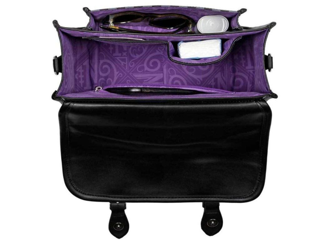 Stylový černý batoh vyvedený s grafikou Akdaemie Nikdyvíc ze seriálu Wednesday od společnosti Netflix. Batoh má jednu velkou kapsu, ve které se nachází jedna menší kapsu na drobnosti a cennosti, nastavitelné popruhy a ucho pro nošení v ruce.