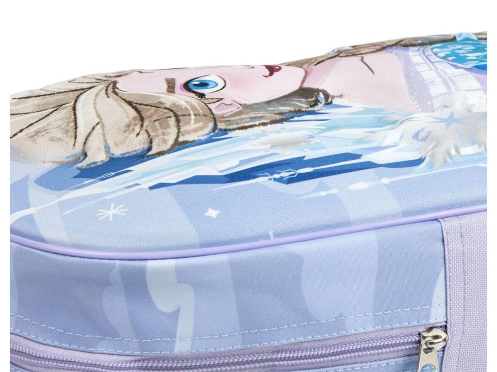 Fialový dětský batoh s výrazným 3D motivem princezny Elsy z oblíbené pohádky Ledové království potěší každou malou obdivovatelku zimního kouzla. Plastický přední panel s motivem Elsy dodává batohu jedinečný vzhled, který na první pohled zaujme. Batoh nabízí jednu prostornou hlavní kapsu na zip a praktickou boční síťku na láhev. Díky délkově nastavitelným ramenním popruhům se pohodlně přizpůsobí dětským zádům. Pevný polyester v kombinaci s EVA materiálem zajišťuje odolnost a dlouhou životnost i při každodenním nošení do školky, školy či na výlety.Stylový a praktický doplněk pro každou malou i větší princeznu.
