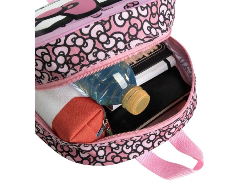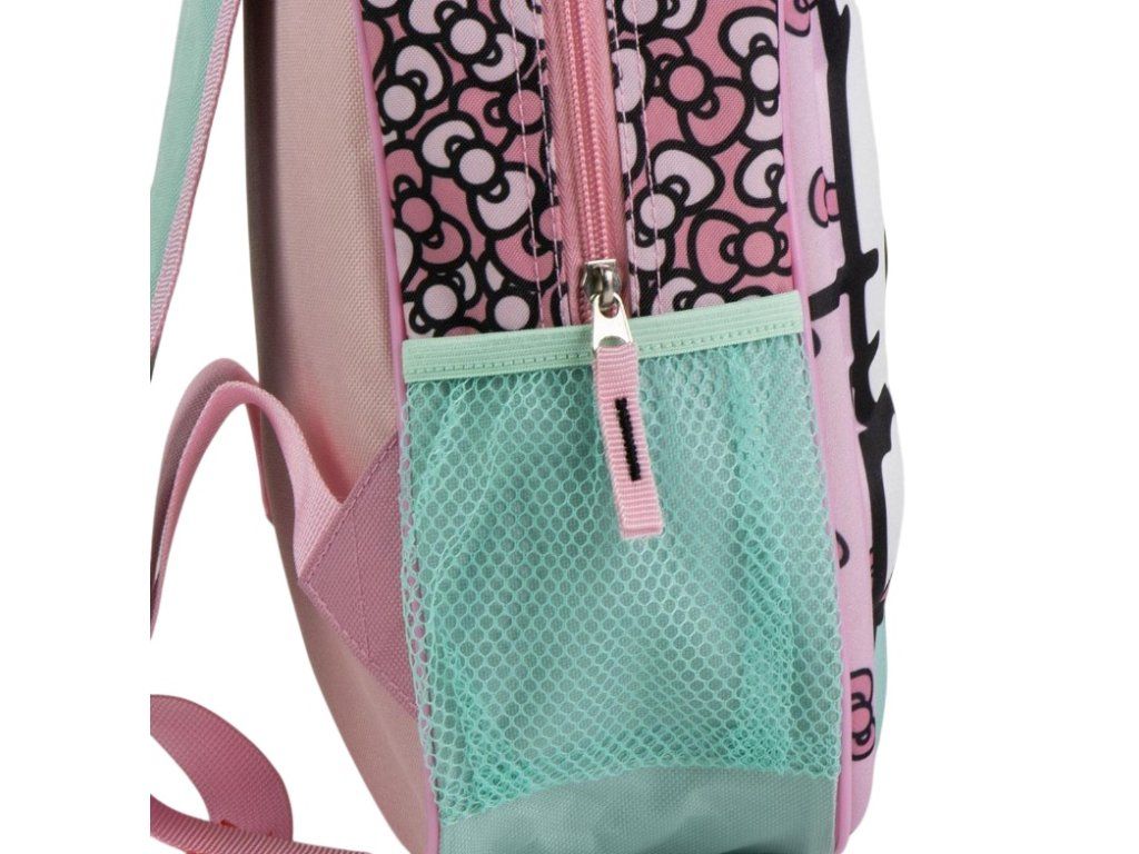 Růžový dětský batoh s výrazným 3D motivem Hello Kitty potěší každou malou obdivovatelku roztomilosti. Plastický přední panel dodává batohu jedinečný vzhled, který na první pohled zaujme. Batoh nabízí jednu prostornou hlavní kapsu na zip a praktickou boční síťku na láhev. Díky délkově nastavitelným ramenním popruhům se pohodlně přizpůsobí dětským zádům. Pevný polyester v kombinaci s EVA materiálem zajišťuje odolnost a dlouhou životnost i při každodenním nošení do školky, školy či na výlety. Stylový a praktický doplněk pro každou malou i větší milovnici Hello Kitty.