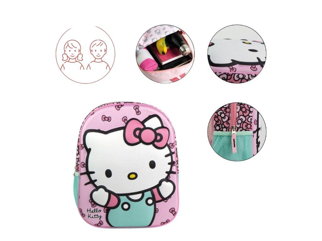 Oficiální produkt - dětský 3D batoh z katalogu zboží s licencí a grafikou populárního dětského motivu Hello Kitty.