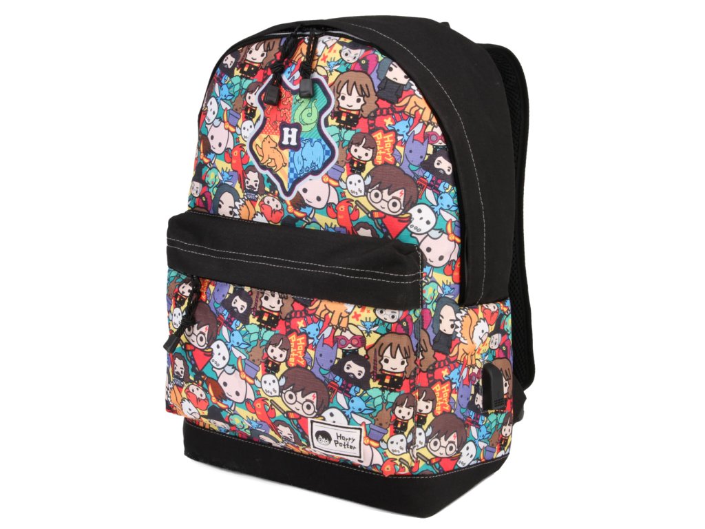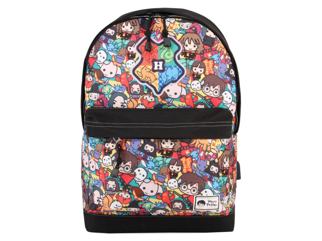 Atraktivní jednoprostorový batoh s přední kapsou se zapínáním na zip a motivem Chibi Characters (postavami ze ságy Harryho Pottera). Batoh disponuje polstrovanými zády, hlavní velkou kapsou, malou kapsou na drobnosti a cennosti, délkově nastavitelnými popruhy a uchem pro snadné nošení v ruce.