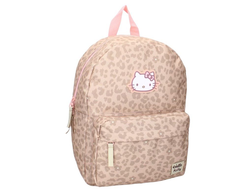 Roztomilý béžový batoh inspirovaný postavičkou Hello Kitty okouzlí na první pohled každou malou i větší fanynku. Kvalitní materiál a hravý design s nášivkou obličeje Kitty dodávají batohu jedinečný vzhled. Batoh nabízí jednu prostornou hlavní kapsu na zip a přední menší kapsu ideální na drobnosti či cennosti. Nechybí ani nastavitelné ramenní popruhy pro pohodlné nošení a praktické horní ucho pro snadné přenášení v ruce. Díky kvalitnímu polyesterovému zpracování je batoh odolný a vhodný pro každodenní používání - do školy, na výlety i volný čas.