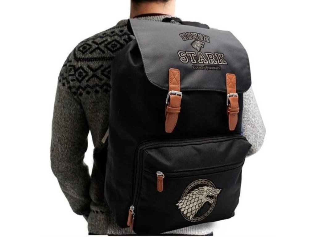 Batoh s logem fantasy dramatickho seriálu Game of Thrones a grafikou rodového znaku Starků. Černý batoh s dvěmi kapsami na přední straně a velký úložný prostor uvnitř. Polstrované a délkově nastavitelné popruhy a ucho pro nošení v ruce. Má magnetické uzávěry.