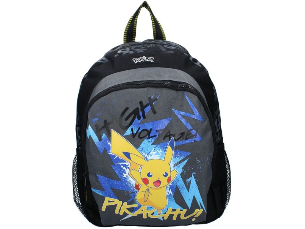 Vstupte do světa Pokémonu s tímto praktickým batohem. Ideální do školy, na sport nebo volný čas. Batoh je lehký, pohodlný a velikostně uzpůsobený. Má velkou hlavní kapsu na zip, jednu menší kapsu na drobnosti a nastavitelné popruhy pro pohodlné nošení. Atraktivní černo-šedý batoh s grafikou hlavního Pokémona Pikachu a nápisem High voltage. Motiv akčního pokémona Pikachu potěší každého malého fanouška.