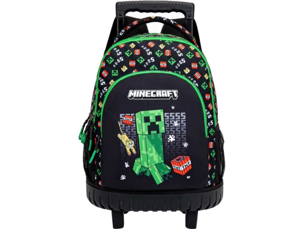 Školní batoh na kolečkách Minecraft je ideálním společníkem pro mladé stavitele a fanoušky herního světa Minecraftu. Batoh je vybaven robustní výsuvnou rukojetí a dvěma pevnými kolečky, které usnadňují jeho tažení i při plném zatížení, což ocení každý školák.