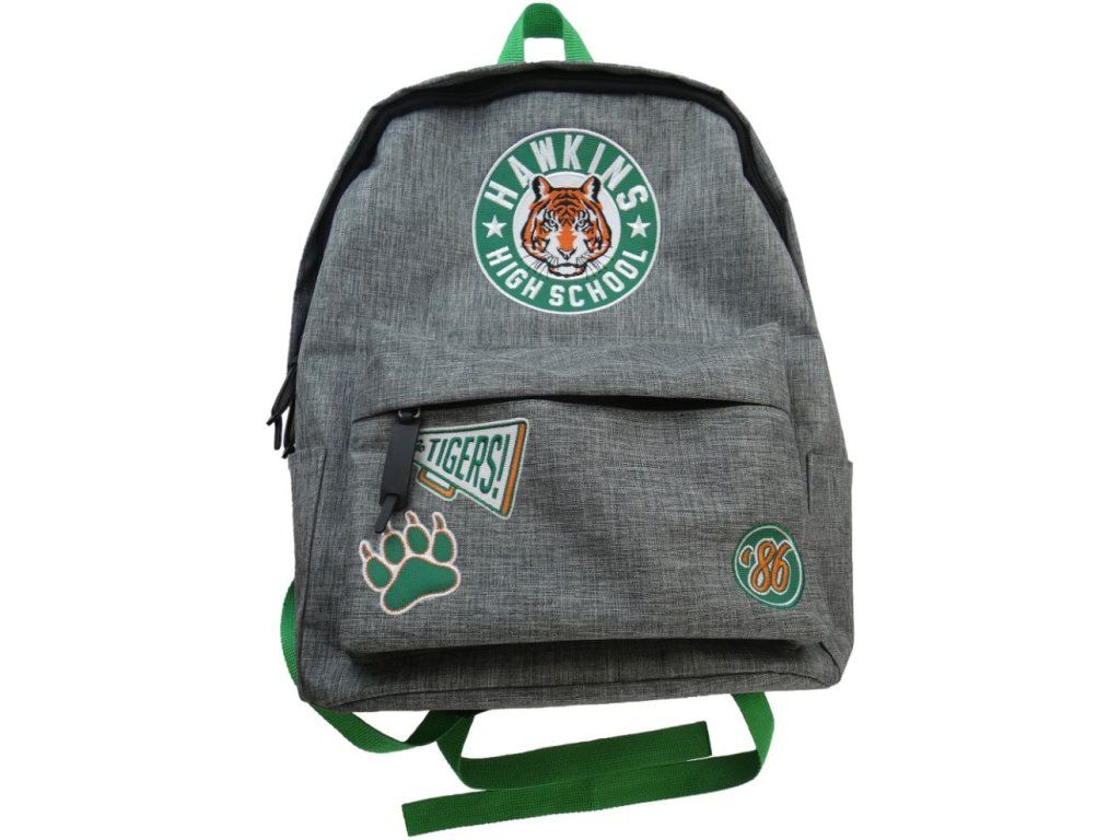 Šedo-zelený dvouprostorový batoh s motivem Hawkins High School (Hawkinsové střední) pro všechny menší i větší fanoušky populárního seriálu Stranger Things. Batoh má délkově nastavitelné popruhy a ucho pro snadné nošení v ruce.