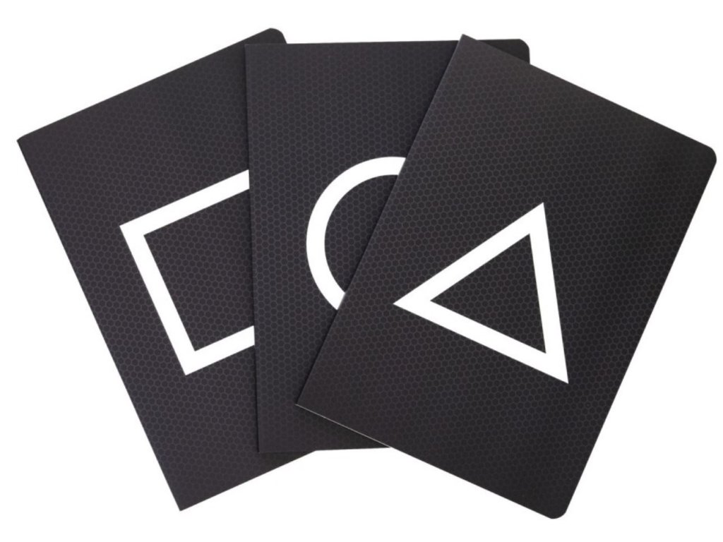 Oficiální produkt - zápisníky z katalogu zboží s grafikou a licencí seriálu Squid game (Hra na oliheň).