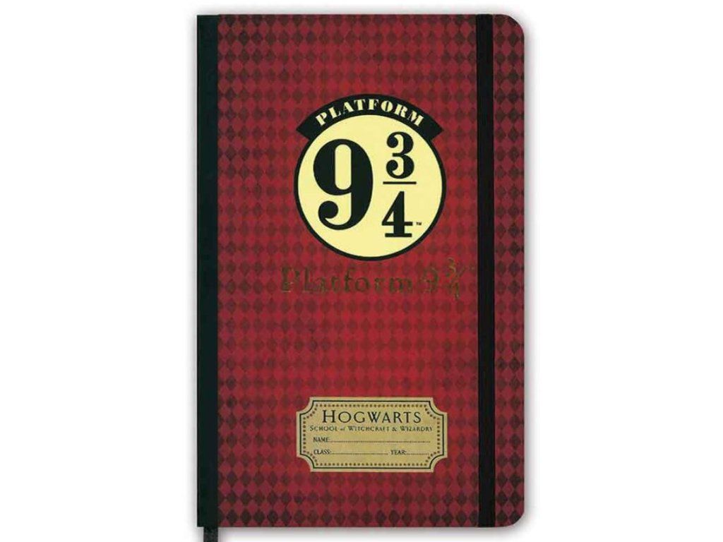 Poznámkový blok ve formátu A5 s pevnou vazbou a gumičkou na zavírání inspirovaný nástupištěm 9 a 3/4.