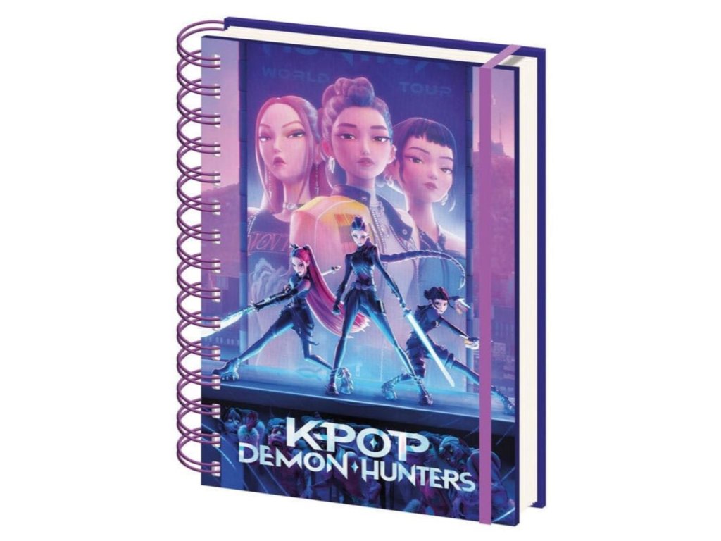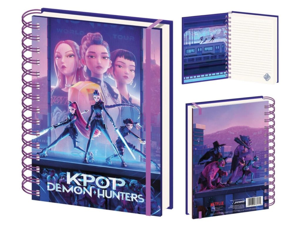 Oficiální produkt - poznámkový blok v kroužkové vazbě z katalogu kancelářského a dárkového zboží s grafikou, motivem a licencí populárního filmu K-Pop Demon Hunters (Lovkyně démonů).