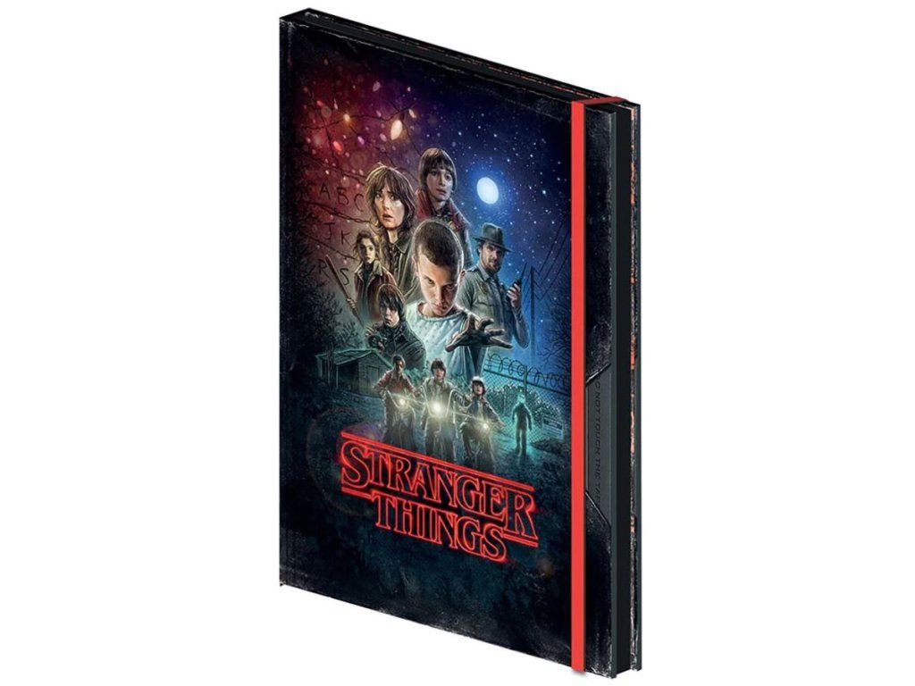 Oficiální produkt - blok/zápisník ve formátu A5 z katalogu kancelářského zboží s grafikou a licencí populárního mysteriózního seriálu Stranger Things.