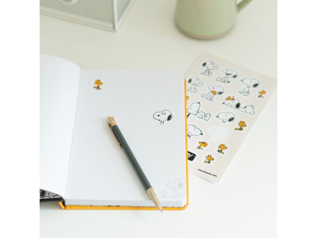 Prémiový zápisník velikosti A5 v pevné vazbě a s potiskem animovaného psa Snoopy. Blok obsahuje 96 nelinkovaných listů (192 stran), látkovou záložku a obálku na zadní pevné straně bloku. Zápisník je vhodný i jako dárek pro všechny fanoušky tohoto oblíbeného psa a nesmí tak chybět žádnému velkému fanouškovi pro jeho poznámky.