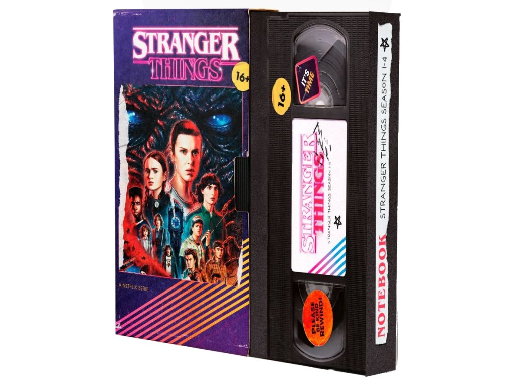 Poznámkový blok ve formátu A5 s tvrdými deskami, 96 nelinkovanými listy, vyvedený v grafice VHS kazety s grafikou seriálu Stranger Things. Zápisník je vhodným dárkem pro všechny fanoušky, kteří si chtějí monstra z Hawkinsnu přehledně a stylově zapisovat.