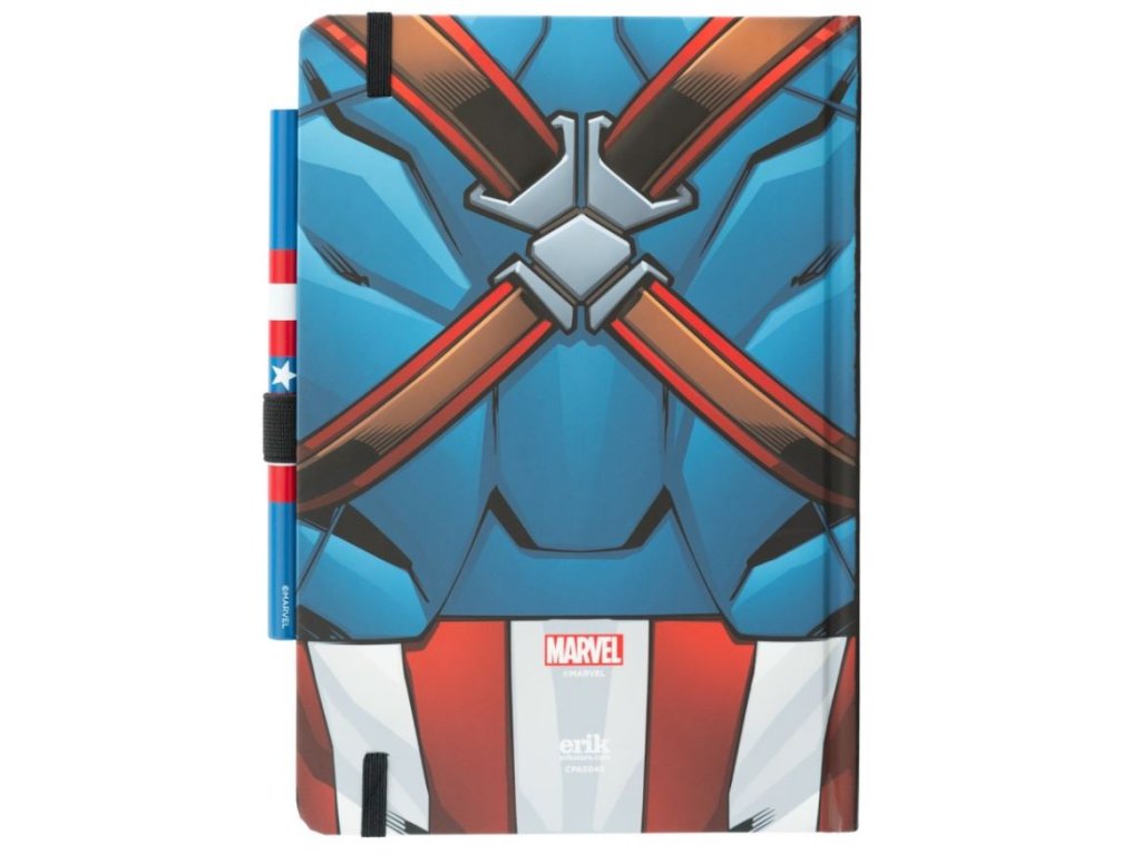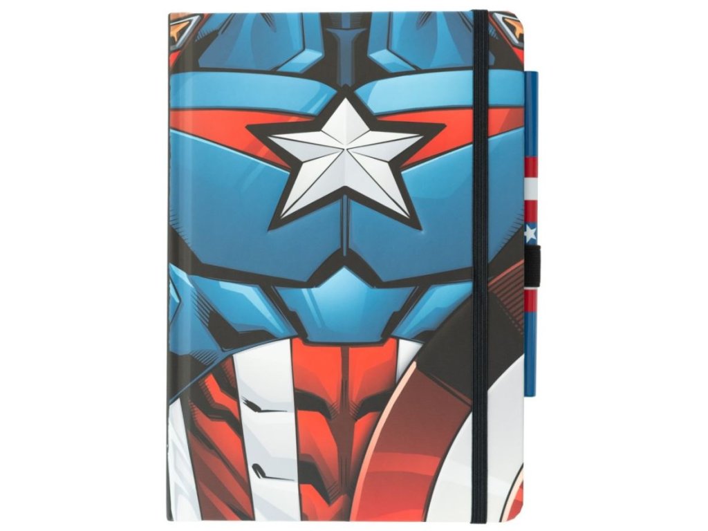 Oficiální produkt - prémiový zápisník z katalogu výrobků s licencí a grafikou superhrdiny Captain America od komiksové společnosti Marvel.