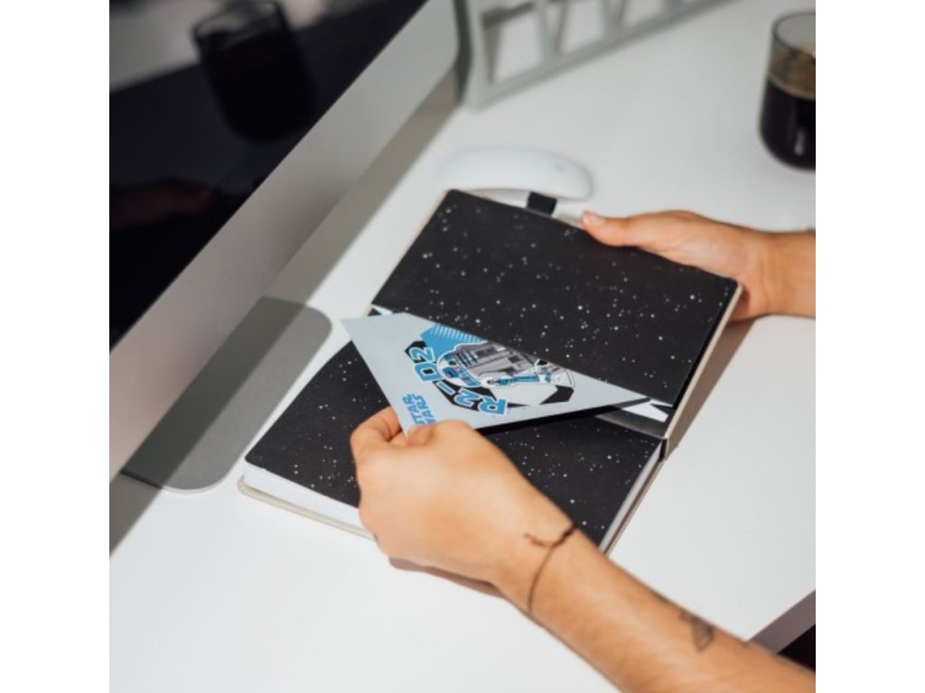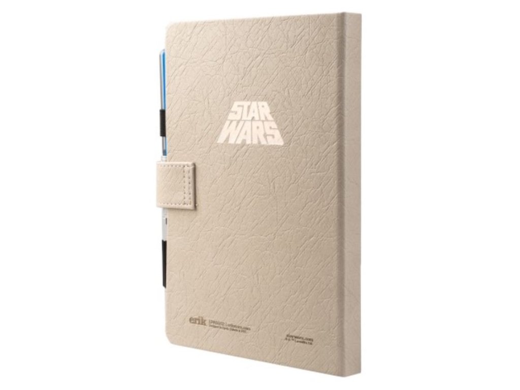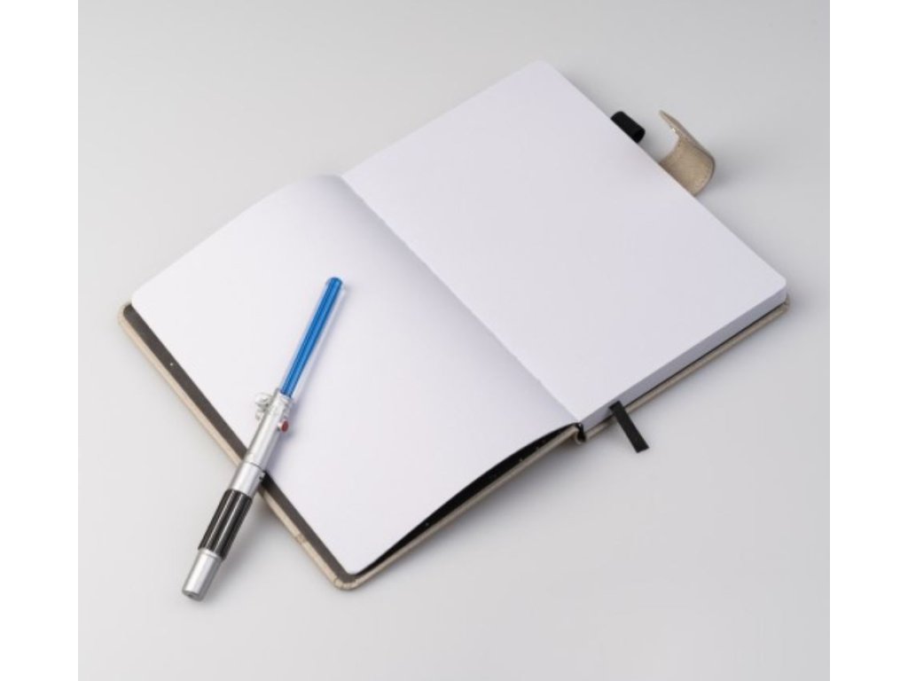 Zápisník A5 v pevné vazbě s perem se světelným mečem. Má přebal z PU s reliéfním a metalickým potiskem postavy jménem Luke Skywalker, vnitřek kuličkového typu, zaoblené rohy, lepenou vazbu, stuhu na záložku, kapsu a zavírání na magnetickou sponu. Obsahuje 96 listů (192 stran) gramáže 100 g/m2. Součástí je také pero, které simuluje světelný meč, který vydává světlo po stisknutí tlačítka umístěného na jeho těle a které funguje na 3 1,5V AG3 baterie.