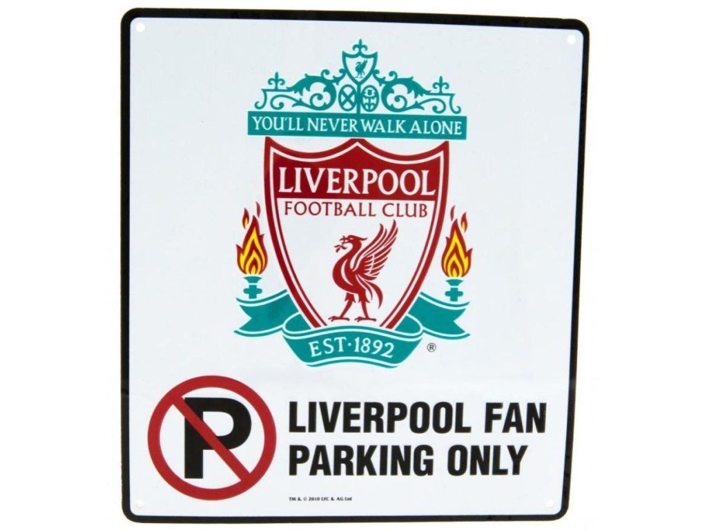 Interiérová dekorace pro každého fanouška slavného fotbalového klubu FC Liverpool. Plechová cedule na zeď s grafikou erbu FC Liverpool a nápisu: Liverpool Fan Parking Only'. Skvělá možnost, jak ukázat svoji oddanost oblíbenému klubu.