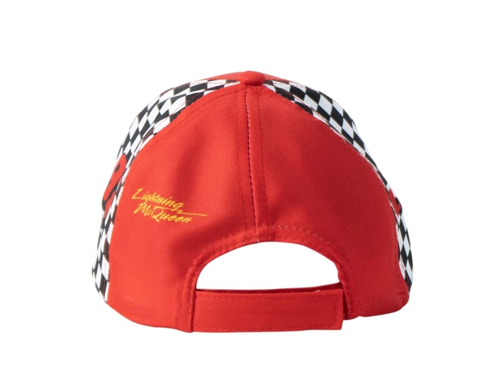 Hledáte perfektní dárek pro malého fanouška autíček z pohádky Auta? Tato stylová kšiltovka je trefou do červeného! Kombinuje oblíbený design s praktičností a ochranou před sluncem. Přední panel zdobí dynamická grafika s detaily závodního modelu auta Bleska McQueena s typickým šachovnicovým vzorem. Díky nastavitelnému látkovému řemínku na suchý zip v zadní části kšiltovka roste s vaším dítětem a zajistí pohodlné nošení po dlouhou dobu. Lehký, odolný a snadno udžitelný materiál. Stylový a praktický doplněk, který potěší každého menšího i většího fanouška rychlých aut.
