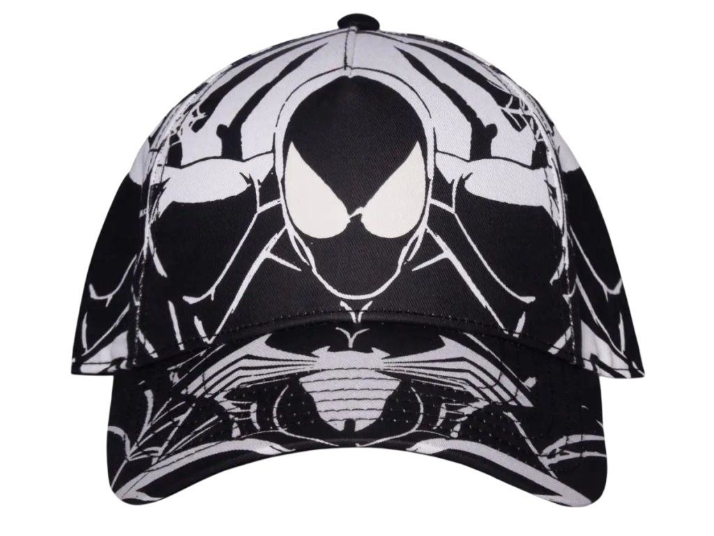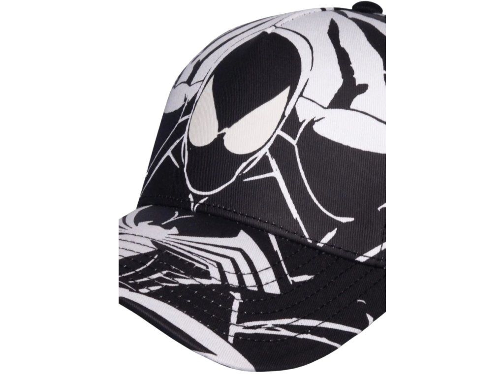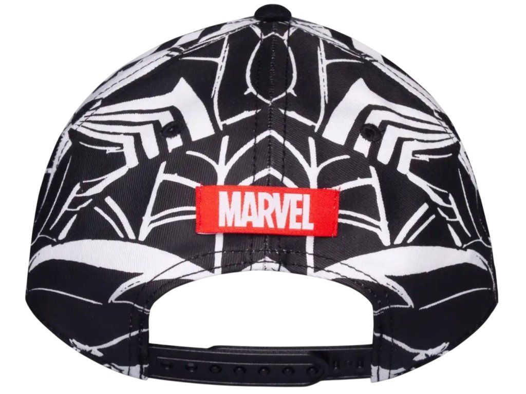 Prémiová bavlněná černo-bílá baseballová kšiltovka s logem Marvel a grafikou postavy superhrdiny Spidermana. Kšiltovka je vzadu otevřená s poutkem na přizpůsobení velikosti. Malé červené logo komiksové společnosti Marvel zvýrazňuje kšiltovku i ze zadní části.