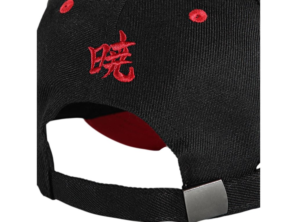 Atraktivní černá baseballová kšiltovka s červeným kšiltem a Akatsuki symbolem z akční série mangy NAruto Shippuden. Kšiltovka je vzadu otevřená s poutkem na přizpůsobení velikosti pro každého správného fanouška.