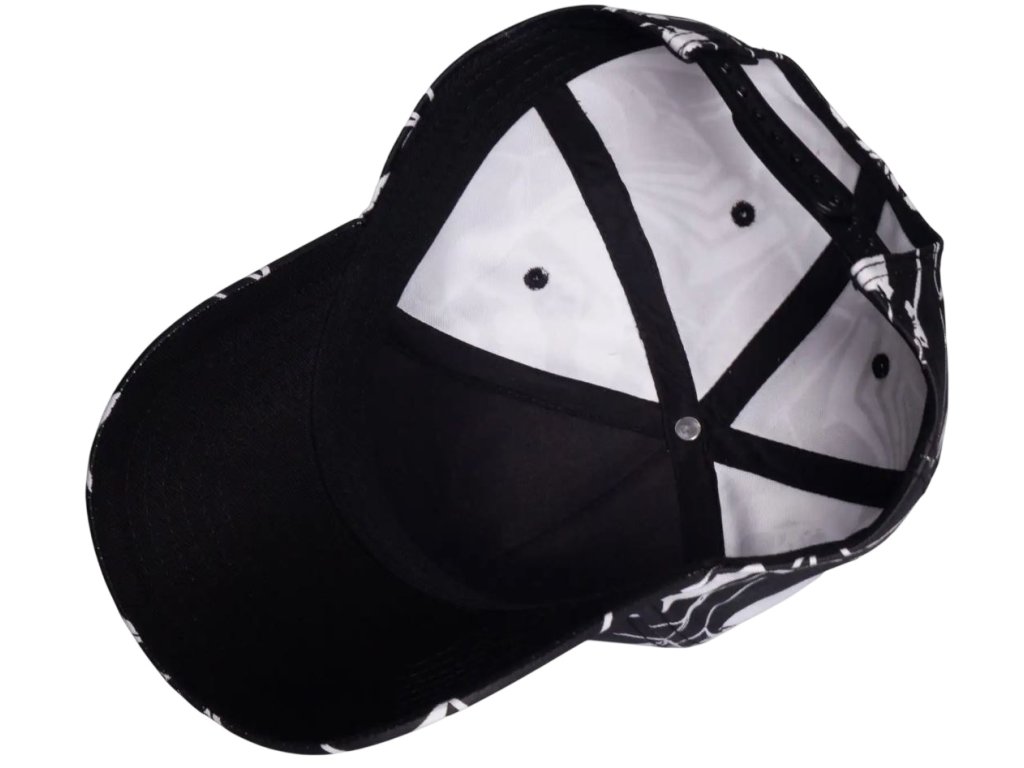 Prémiová bavlněná černo-bílá baseballová kšiltovka s logem Marvel a grafikou postavy superhrdiny Spidermana. Kšiltovka je vzadu otevřená s poutkem na přizpůsobení velikosti. Malé červené logo komiksové společnosti Marvel zvýrazňuje kšiltovku i ze zadní části.