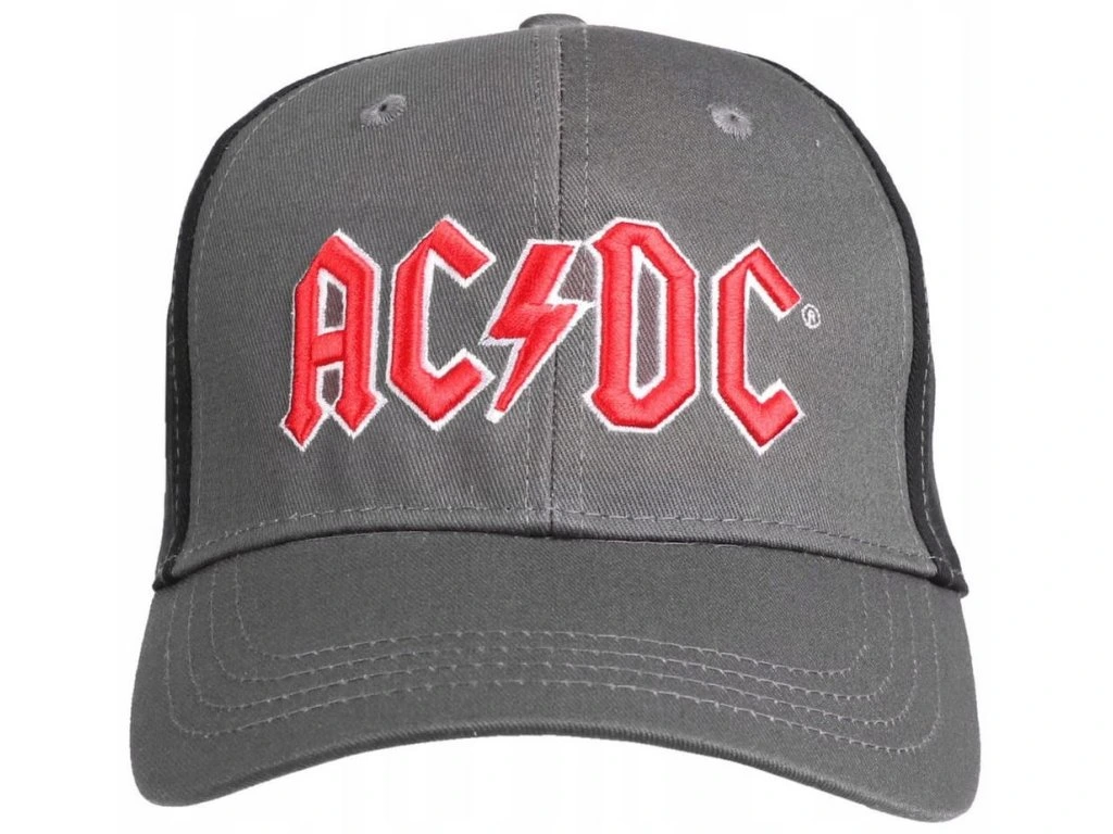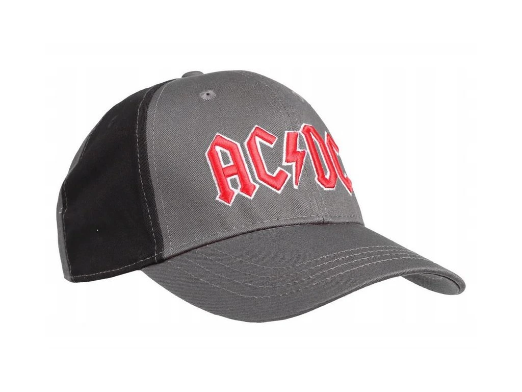 Atraktivní šedo-černá baseballová kšiltovka s červeným logem skupiny AC/DC.