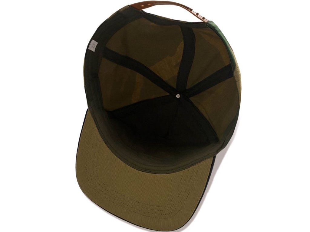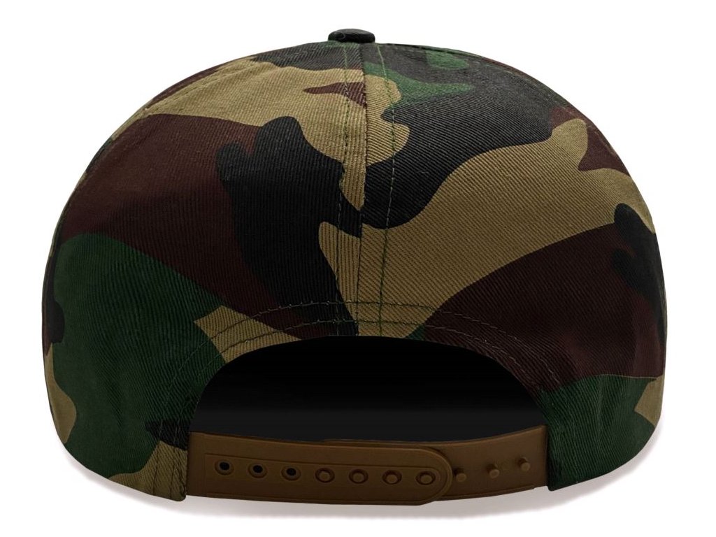 Snapback kšiltovka inspirovaná se zlatým logem série Jurský park s vojenským motivem barev. Nastavitelná velikost řemínkem na zadní části.