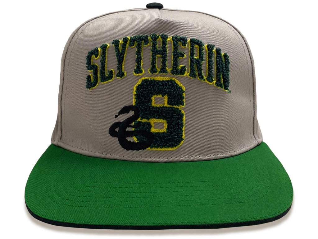 Atraktivní rap kšiltovka s rovným kšiltem s motivem Zmijozelské koleje. Na zadní straně čepice je plastový řemínek, sloužící k nastavení velikosti.