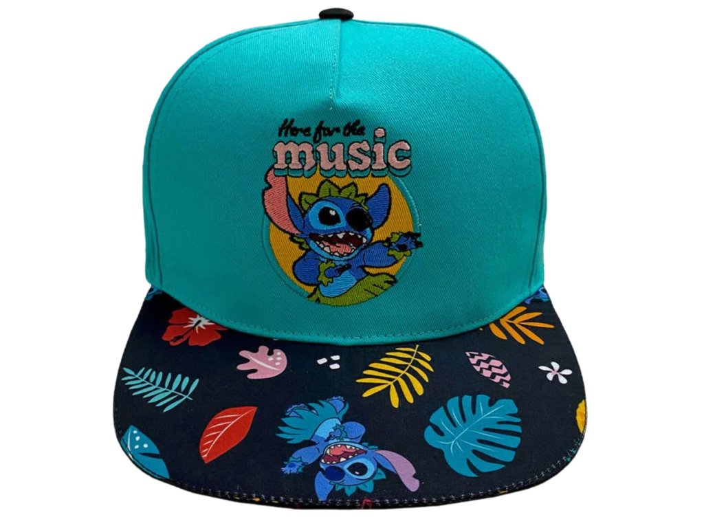 Modrá kšiltovka s rovným kšiltem s grafikou Stitche a nápisem Here for the music. Atraktivní kšilt s ikony stitche a exotickými listy dodává kšiltovce jedinečný vzhled. Na zadní straně kšiltovky je plastový řemínek, který slouží k nastavení vhodné velikosti, a proto je kšiltovka vhodným doplňkem každého menšího i většího fanouška.