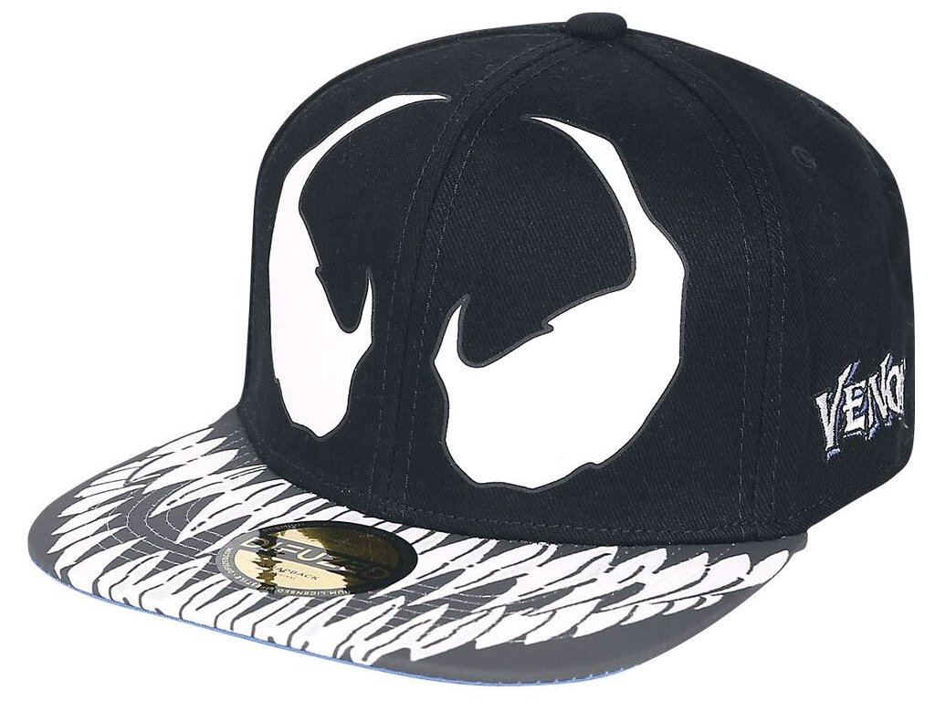 Oficiální kšiltovka a doplňkové zboží z fashion katalogu produktů s logem a grafikou amerického komiksu Venom.
