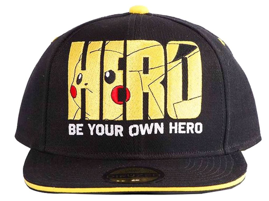 Atraktivní černá rap kšiltovka s motivem Pokémona jménem: Pikachu a nápisem Hero. Kšiltovka má na zadní straně plastový řemínek, který slouží k nastavení vhodné velikosti.