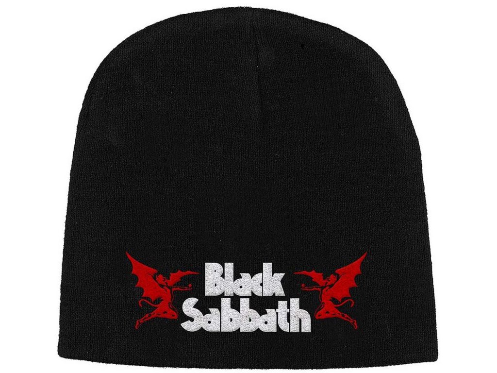 Černá atraktivní zimní čepice s grafikou 2 ďáblů a logem hudební skupiny Black Sabbath. Čepice je vhodným dárkem pro všechny hudební fanoušky, kteří chtějí i v zimě navštívit koncert své oblíbené kapely.