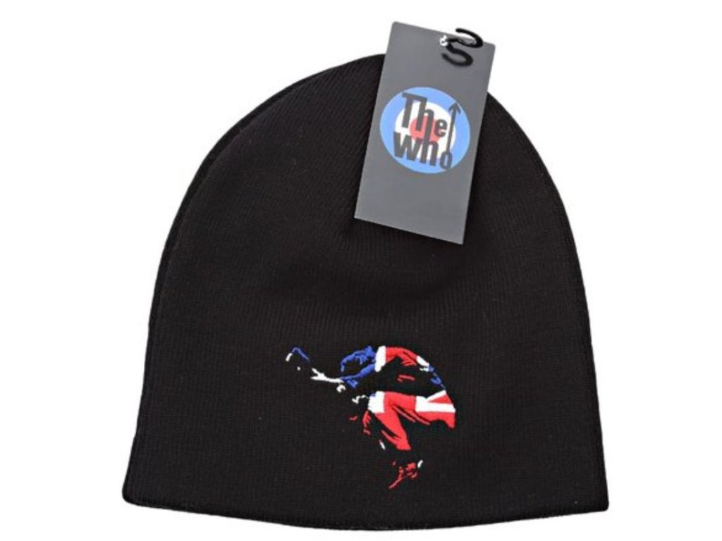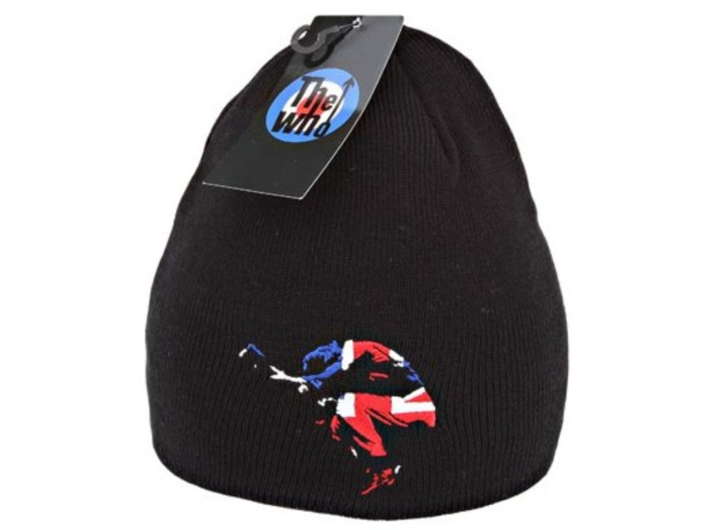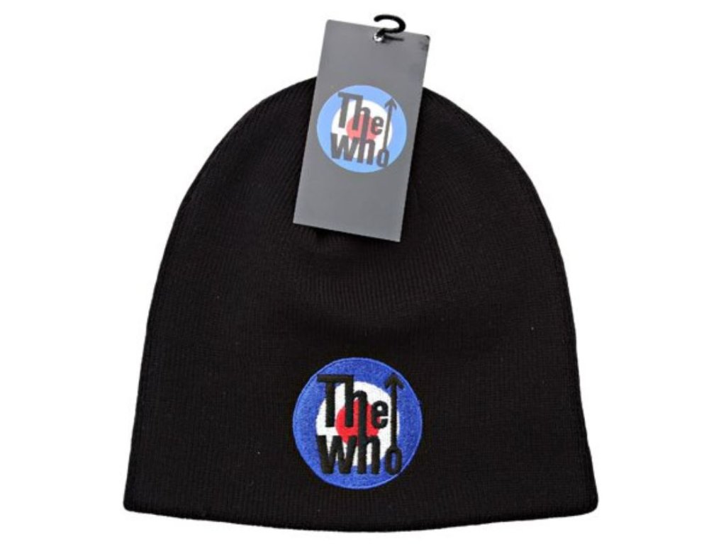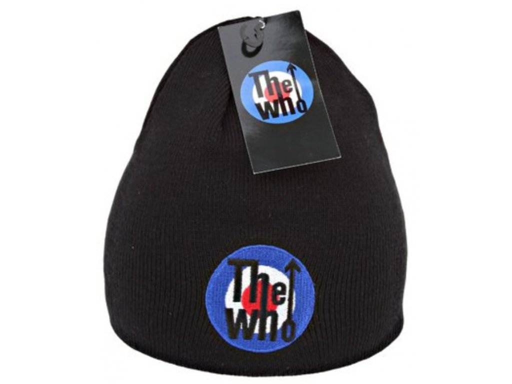 Módní a stylová úpletová pánská zimní čepice černé barvy s barevným logem - terčem slavné britské rockové skupiny The Who.