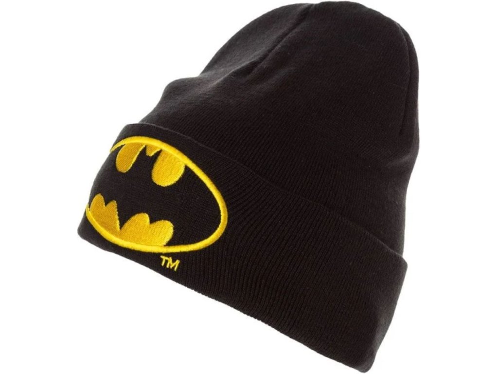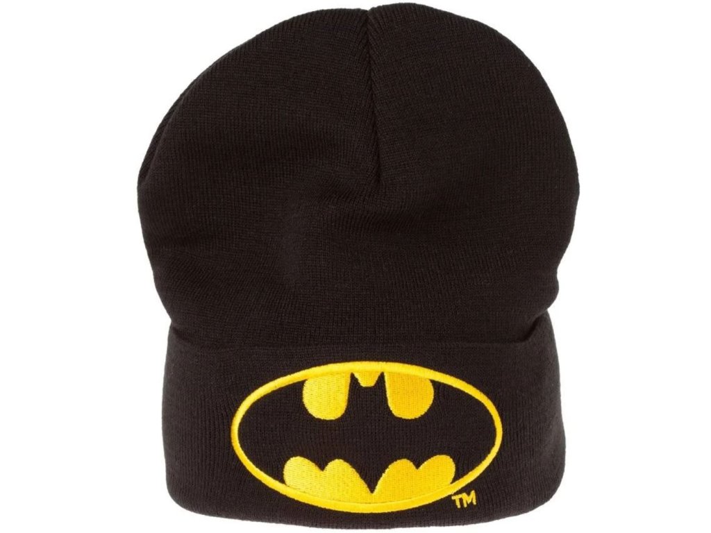 Černo-žlutá zimní čepice s logem komiksového hrdiny Batmana.