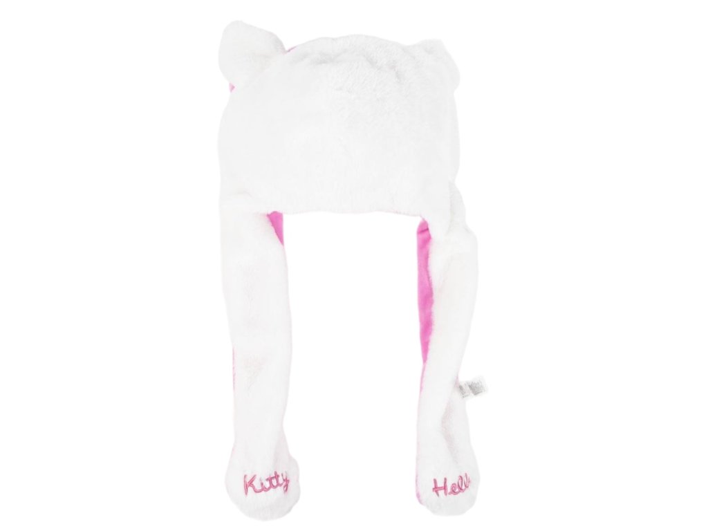 Oficiální produkt - dětská zimní čepice s ušima a copánky z katalogu výrobků s grafikou a licencí populární postavičky Hello Kitty.