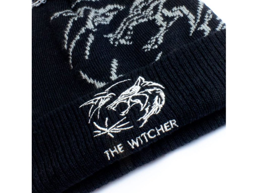 Oficiální produkt - zimní čepice z katalogu produktů s grafikou, motivem a licencí známého akčního fantasy dramatického televizního seriálu The Witcher od společnosti Netflix.