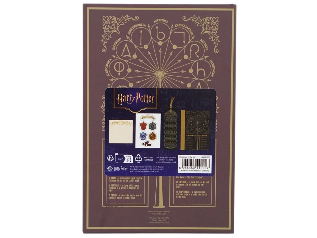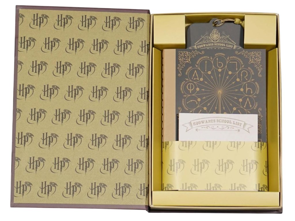 Dárková sada pro fanoušky Harryho Pottera potěší každého milovníka magického světa čar a kouzel. Stylový set je uložen v elegantní tematické krabičce inspirovánou atmosférou Bradavické školy čar a kouzel. Ideální jako dárek pro všechny, kteří si chtějí uchovat své myšlenky, plány či kouzelnické poznámky stylově.