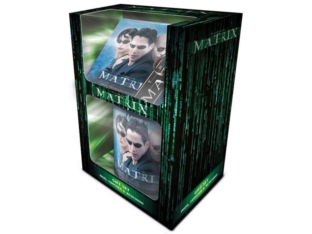 Dárkový set 3 předmětů, inspirovaný populárním filmem Matrix. Set hrníčku, tácku a klíčenky je dodávaný v dárkové krabičce se stejným designem, a proto je celá sada vhodná jako dárek pro každého menšího i většího fanouška.