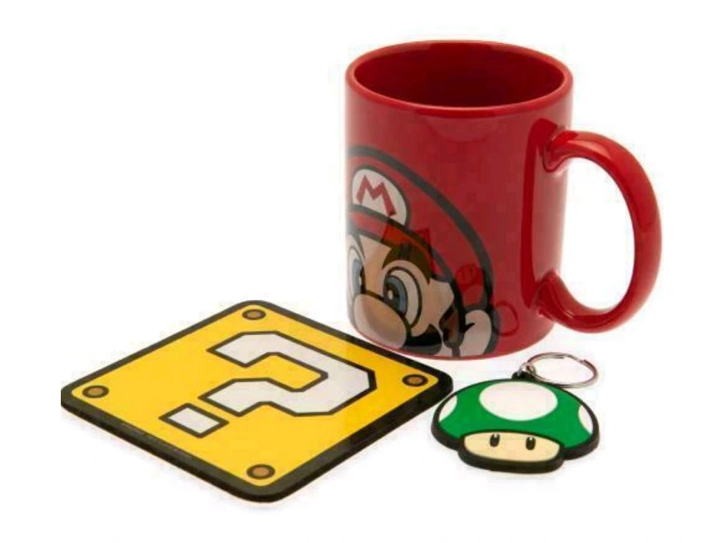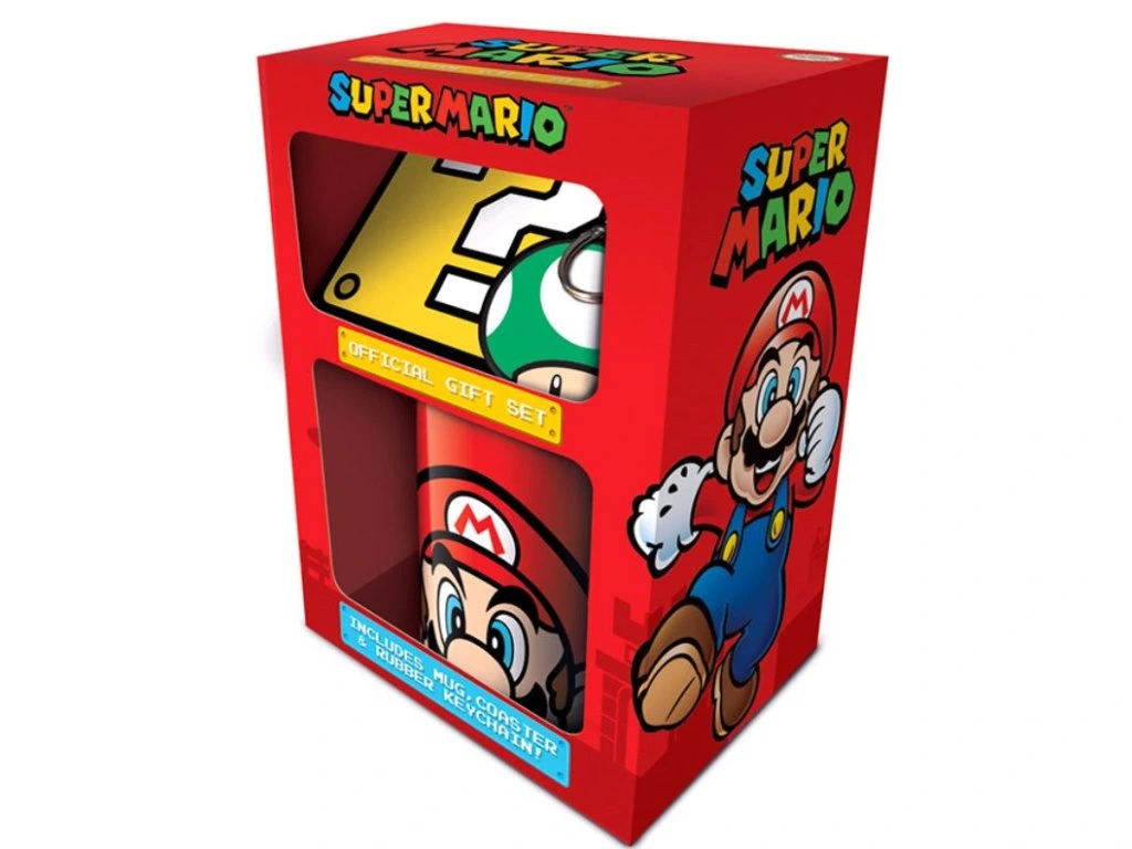 Oficiální dárkový set z katalogu dárkových, sběratelských, upomínkových produktů s logem a grafikou ze slavné počítačové hry Super Mario.