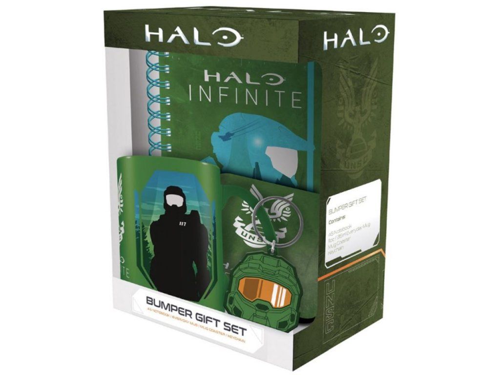 Dárkový set 4 předmětů, inspirovaný populárním seriálem Halo, založeném na stejnojmenné videoherní sérii. Set hrníčku, tácku, bloku a klíčenky je dodávaný v dárkové krabičce se stejným designem, a proto je celá sada vhodná jako dárek pro každého menšího i většího fanouška.
