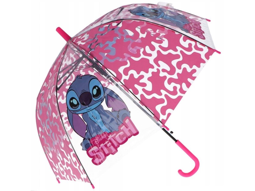 Stylový a odolný dětský deštník s oblíbeným motivem Stitch. Vyroben z pevného sklolaminátu a polyesteru. Automatické otevírání pro snadné použití. Deštník s protiskluzovou úpravou.