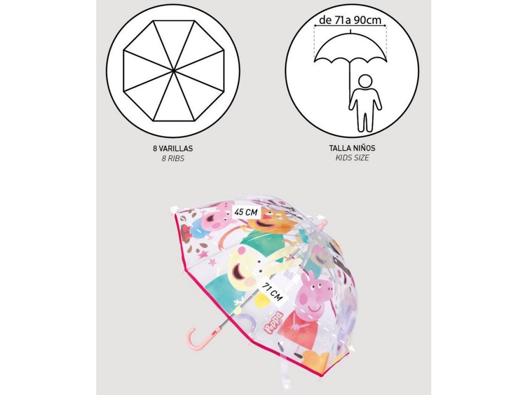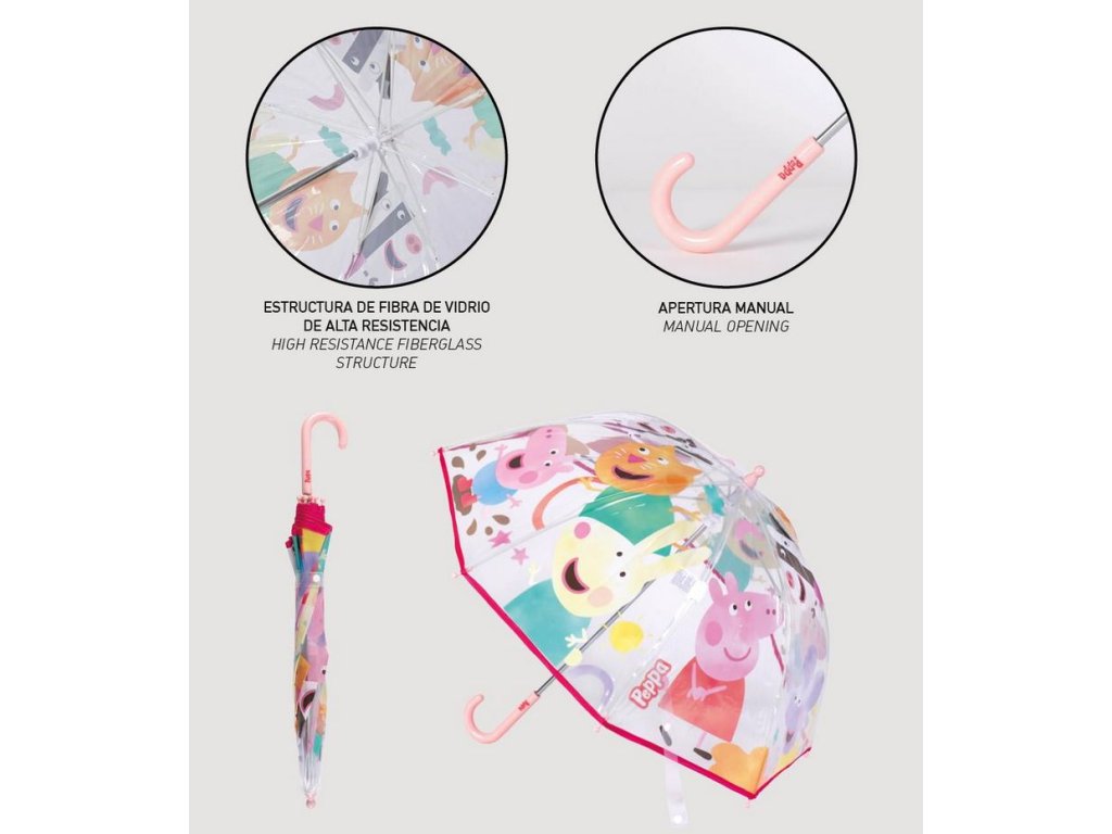 DEŠTNÍK MANUÁLNÍ|DĚTSKÝ PEPPA PIG|CHARACTERS|PRŮMĚR 71 cm