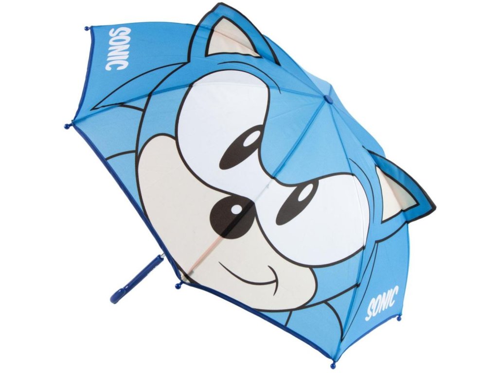 Oficiální produkt - dětský manuální 3D deštník z katalogu zboží s licencí populární videohry a filmu Sonic the Hedgehog (Ježek Sonic).