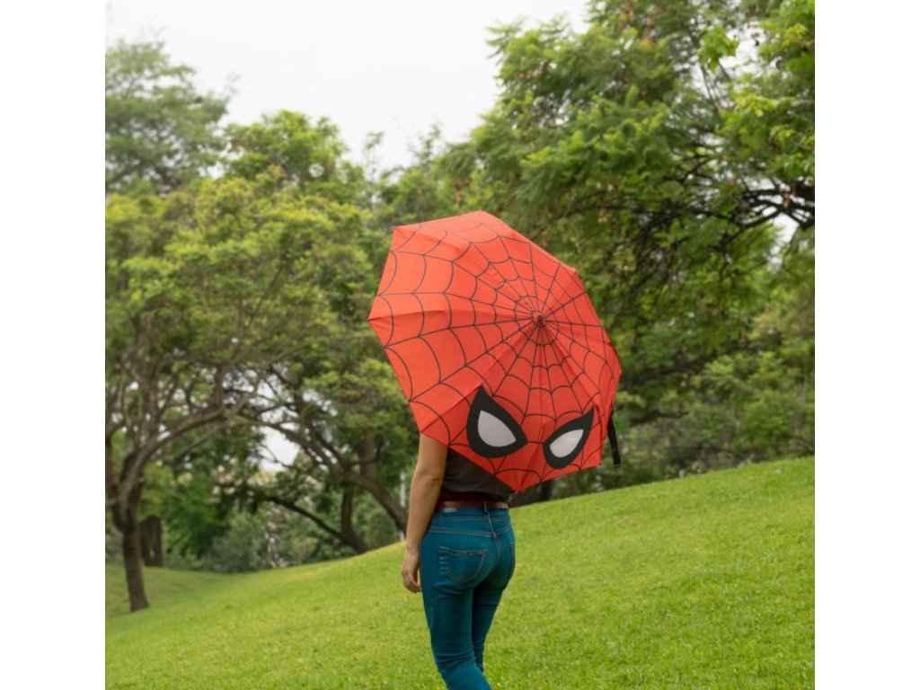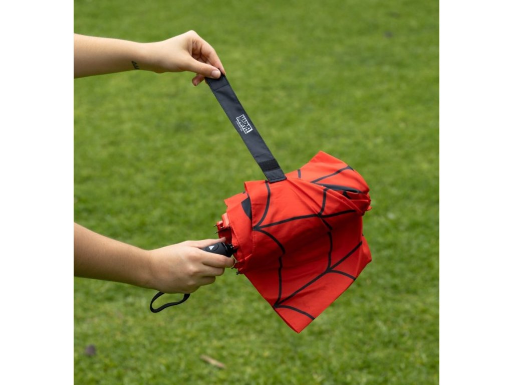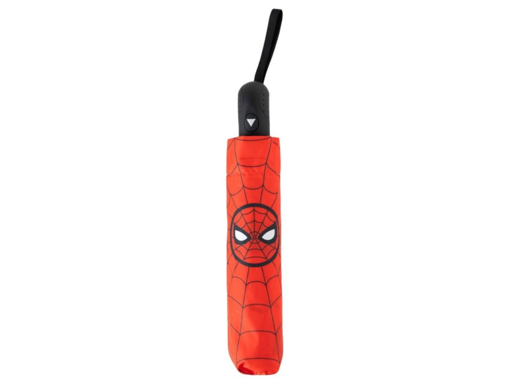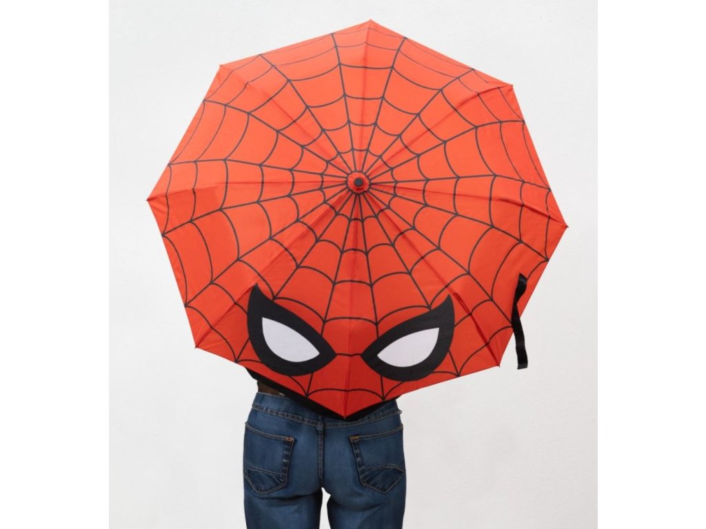 Červený automatický skládací deštník vyvedený z grafiky masky oblíbeného superhrdiny Spidermana. Vyrobeno ze 100% polyesteru s odolným kovem, PVC konstrukcí a PVC rukojetí. Díky své skladnosti je vhodný do každé kabelky či batohu pro každého fanouška tohoto superhrdiny.