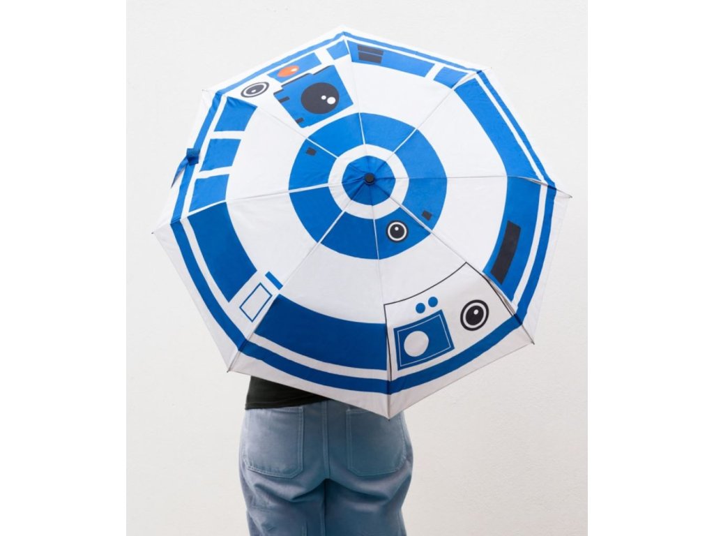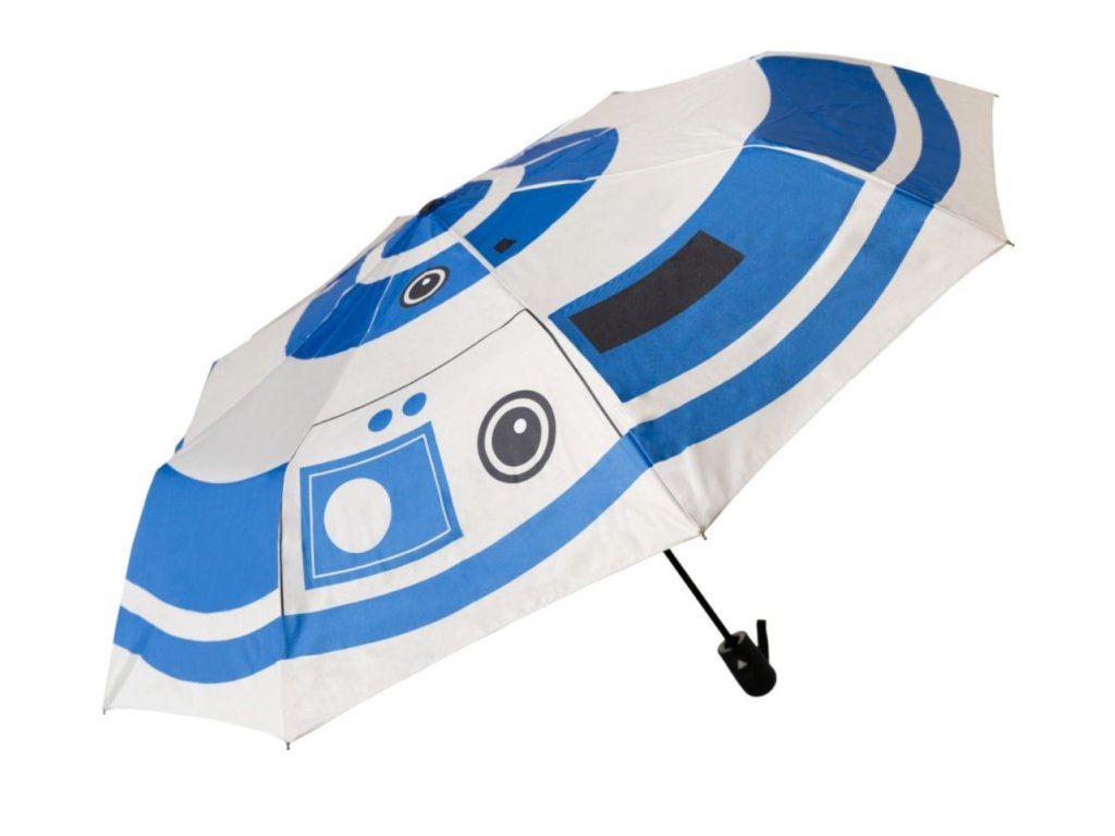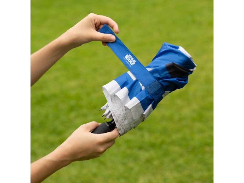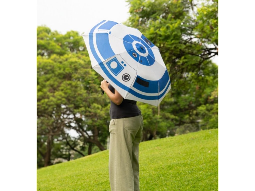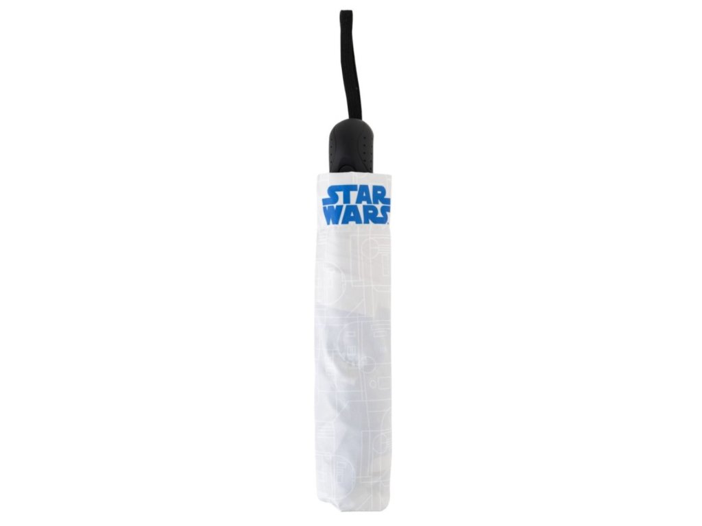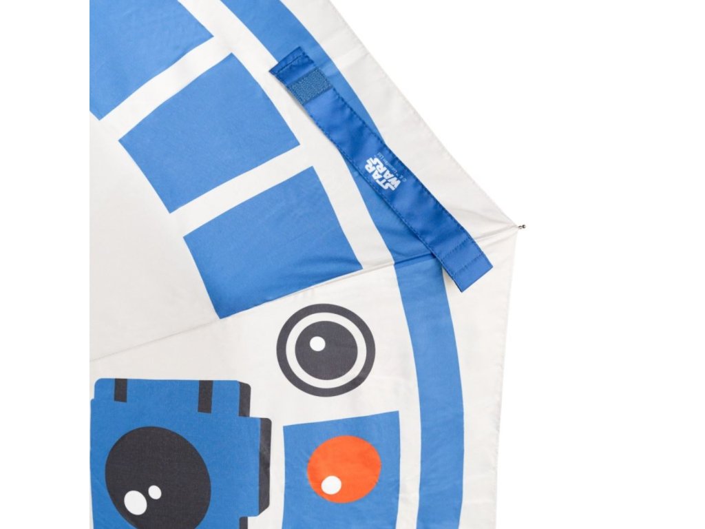 Modro-bílý automatický skládací deštník vyvedený z grafiky postavy R2-D2 z filmů Hvězdné války. Vyrobeno ze 100% polyesteru s odolným kovem, PVC konstrukcí a PVC rukojetí. Díky své skladnosti je vhodný do každé kabelky či batohu pro každého fanouška této sci-fi série.