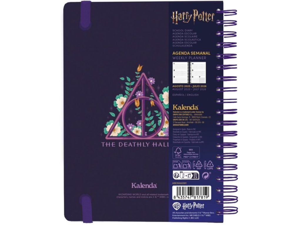 Oficiální produkt - 12 měsíční školní plánovač v kroužkové vazbě na rok 2025/2026 s licencí filmové a knižní série Harry Potter.