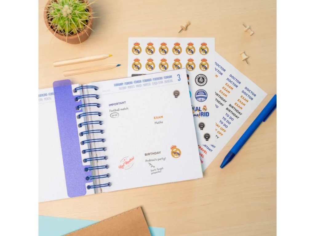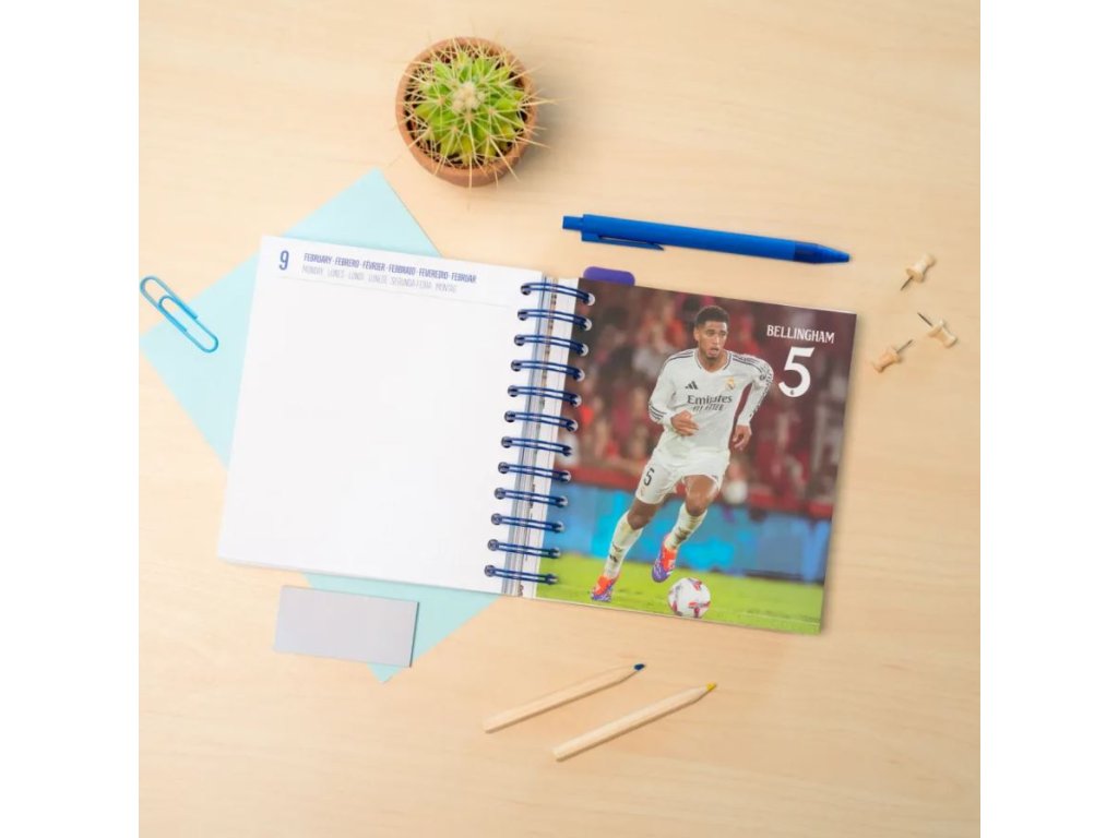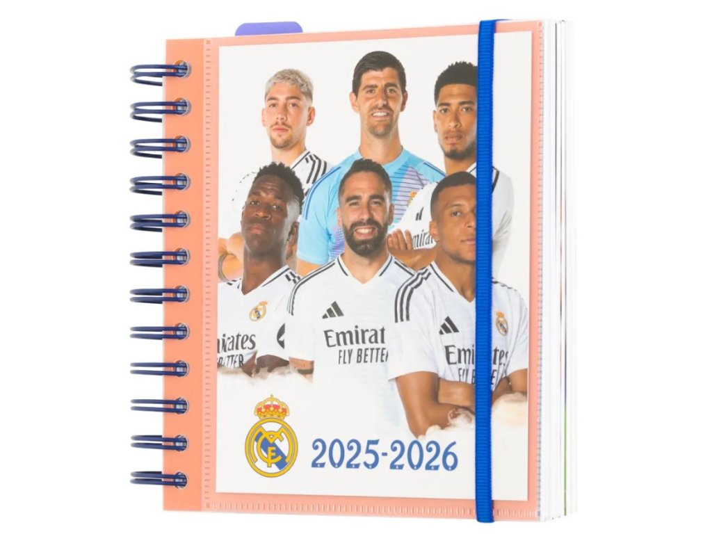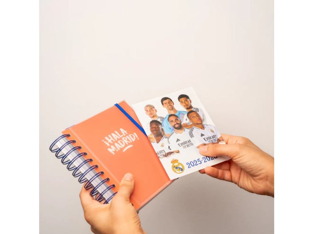 Oficiální produkt - 11 měsíční akademický plánovací diář na rok 2025/2026 s licencí fotbalového klubu Real Madrid FC.