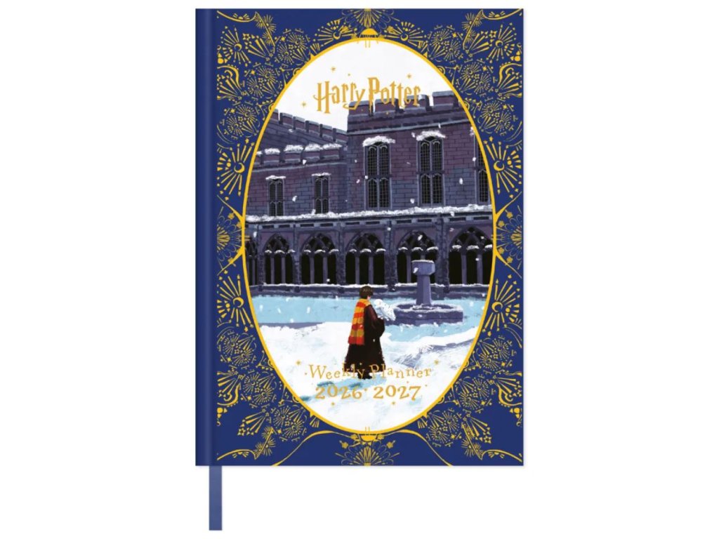 Oficiální produkt - školní 17 měsíční diář v lepené vazbě na rok 2026/2027 z katalogu kancelářských a dárkových produktů s licencí kouzelnické ságy Harry Potter.