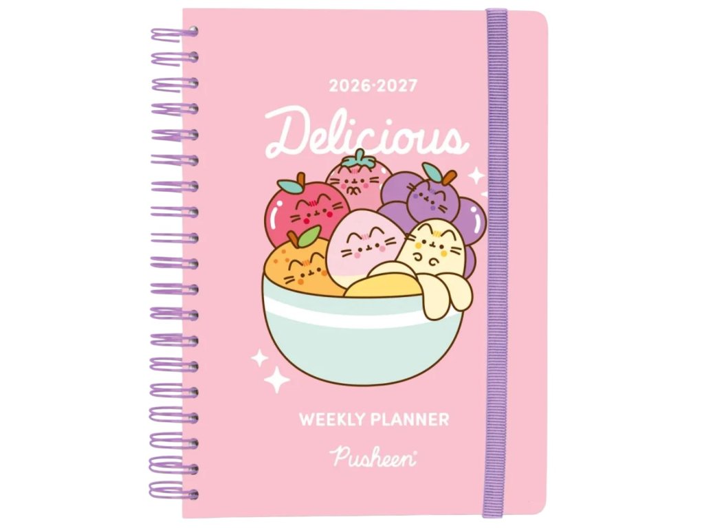 Oficiální produkt - školní 12 měsíční diář v kroužkové vazbě na rok 2026/2027 z katalogu kancelářských a dárkových produktů s licencí roztomilé kočičky Pusheen.