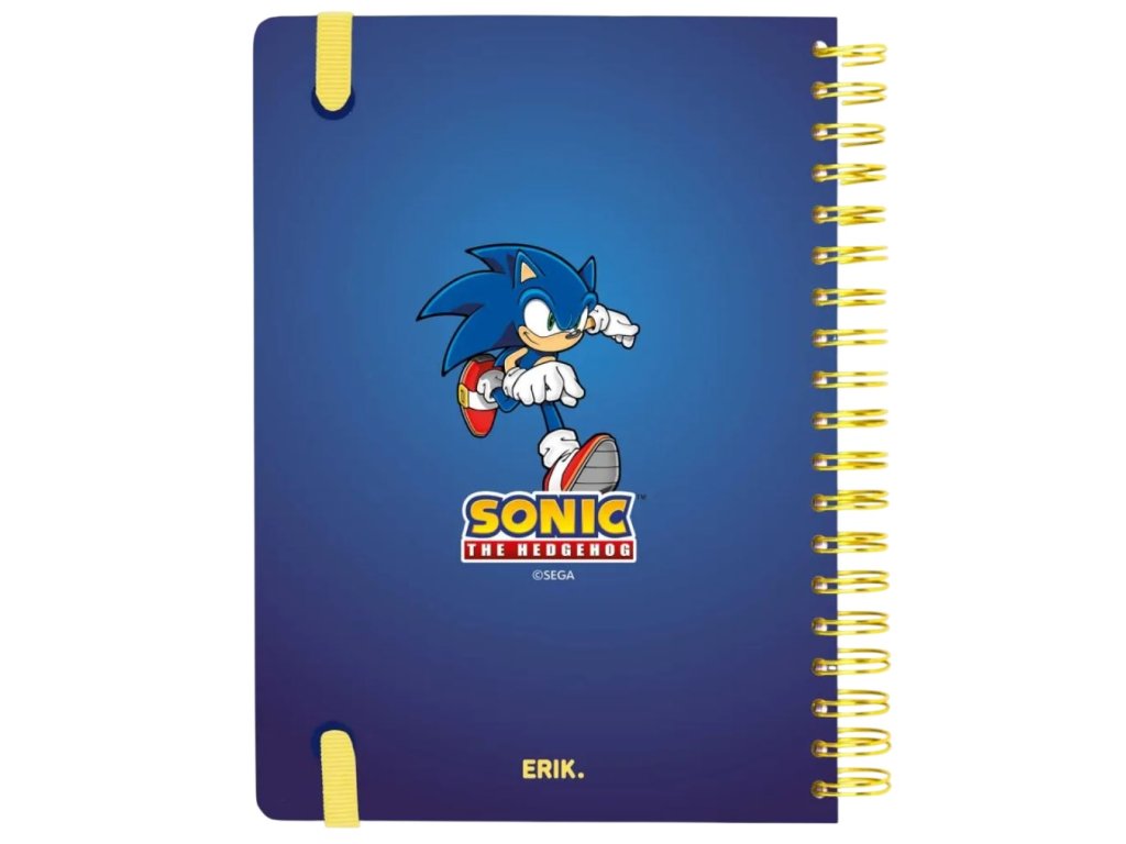 Oficiální produkt - školní 12 měsíční diář v kroužkové vazbě na rok 2026/2027 z katalogu kancelářských a dárkových produktů s licencí akčního hrdiny Sonic the Hedgehog (Ježek Sonic).